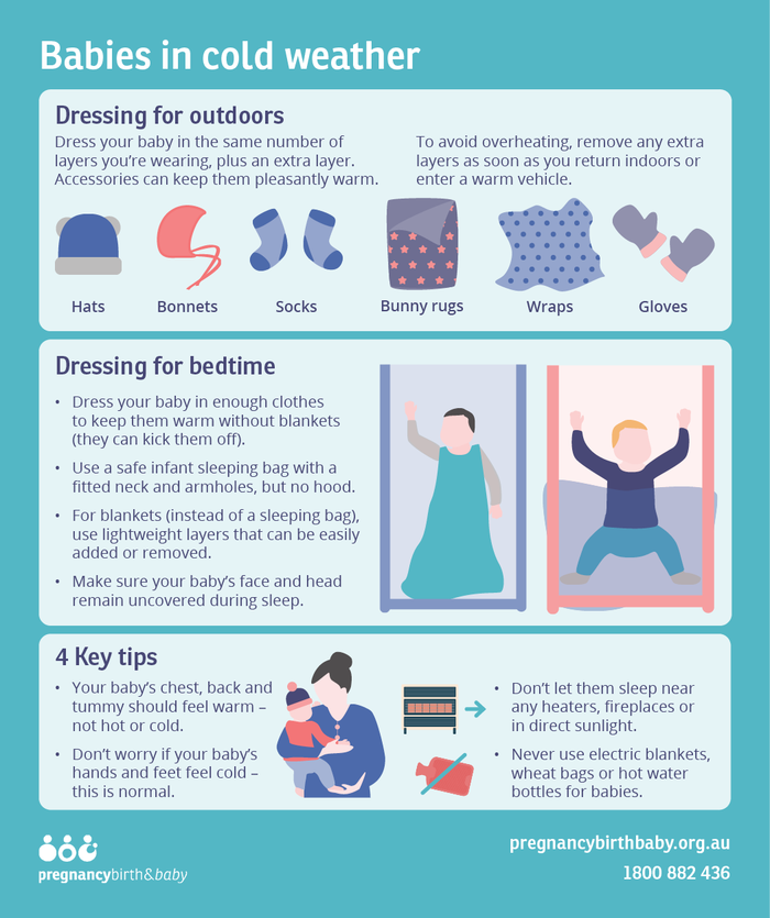 - Your baby’s chest, back and tummy should feel warm – not hot or cold.
